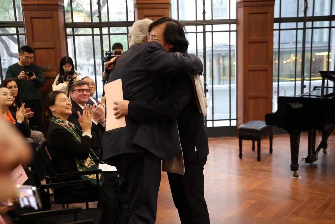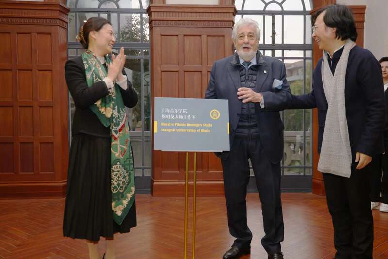 第二天,他又来到上海音乐学院的“音乐城堡”,从院长廖昌永等人手中接过上海音乐学院荣誉教授、上音歌剧院荣誉院长的头衔,同时,多明戈大师工作室也正式揭牌。