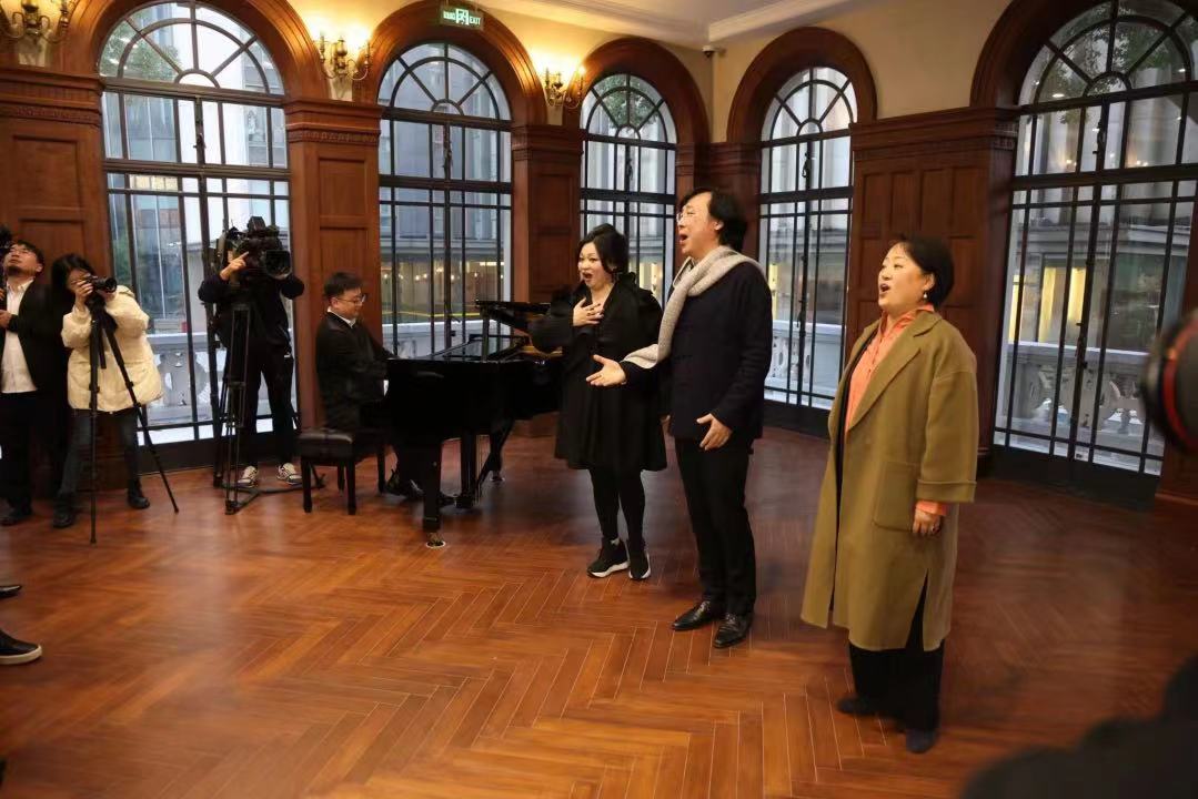 “这是荣誉,也是责任。”多明戈几近哽咽,缓过神后,他兴奋地问,“谁来唱一首?”在他的召唤下,廖昌永开始高歌《我和我的祖国》,黄英、郭森随后加入歌唱队伍。一次计划之外的即兴演唱,将气氛推向高潮。