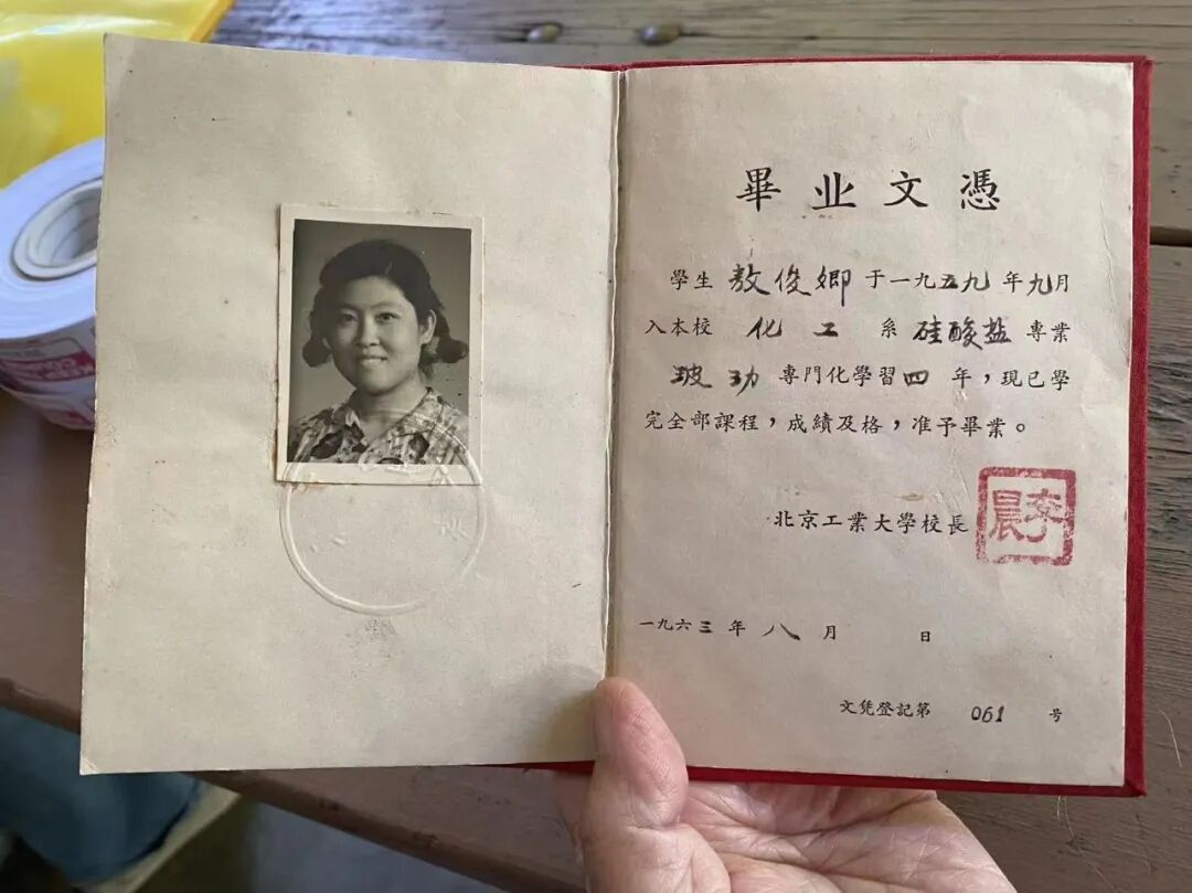 敖俊卿出生于1933年,今年90岁。1950年,17岁的她进入南京水工仪器厂做学徒,三年后以优异的成绩考入中学。中学时代的敖俊卿敏而好学,仅用三年时间就学完了初高中全部课程,于1956年顺利考入大学,学习土木工程专业,之后以调干生身份转学进入北京工业大学,就读于化工系硅酸盐专业