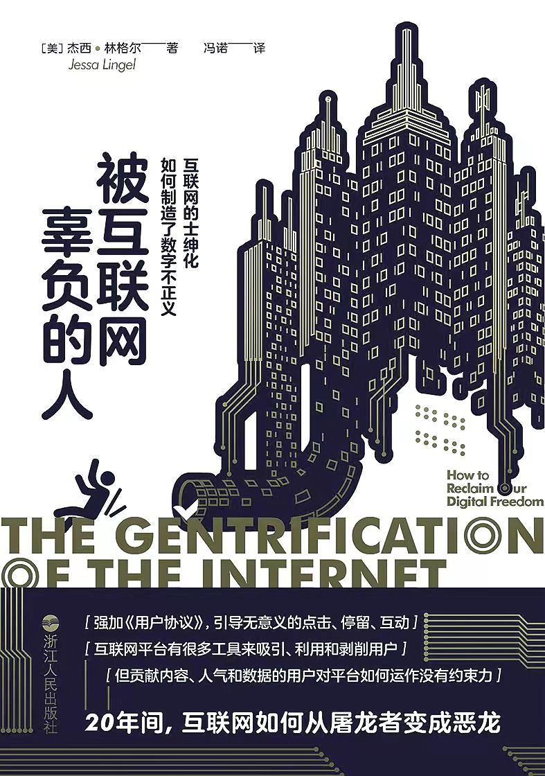 城市改造“士绅化”造就了大量雷同社区,社区文化迅速衰败;互联网“士绅化”更狠,因为它决定着谁能获得工作,这种不公使大量的穷人陷入绝境。如果说,早期互联网是充满活力、“技术控”们的家园,今天的互联网则成了寡头们的乐园,“人们被赶进少数拥有巨大权力的平台,被投喂给监控机器,被采掘注意力,被算法引导”。谁不接受它,谁就会陷入灭顶之灾。可即使是本书作者,也不知在现有制度环境下,如何才能突破互联网“士绅化”的牢笼。