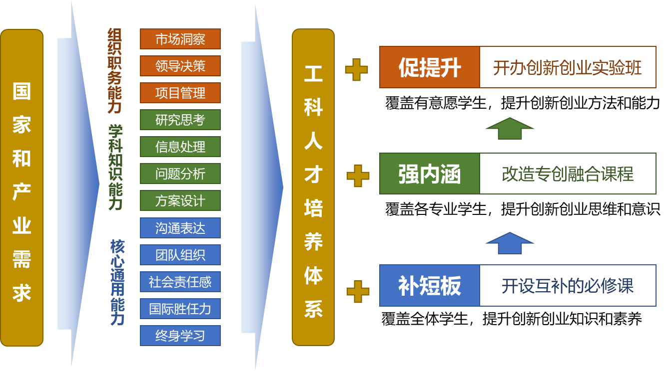多年来,学校汇聚企业、政府、资本和校友力量,开展以产业需求为驱动力的双创实践,依托“创意创新创业全链条实践支撑体系”,形成“住宿书院+专业学院+双创学院”的三院联创人才培养机制。