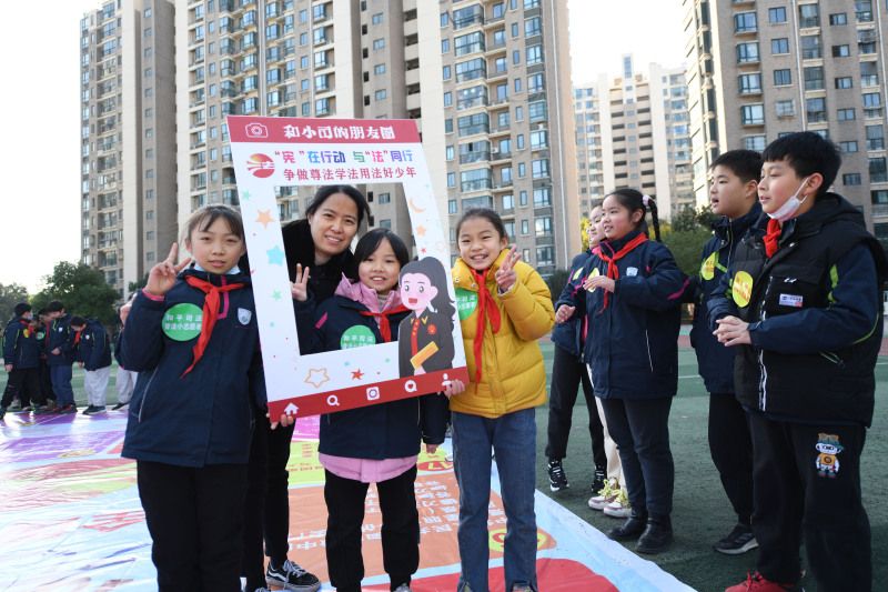 为进一步提高青少年法治意识和法律素养,培养青少年尊法学法守法用法的浓厚兴趣,在“12.4”国家宪法日到来之际,2023年12月1日,合肥市瑶海区司法局、和平路街道关工委、司法所携手和平小学东校、绿苑社区在合肥市和平小学东校开展了一场主题为““宪 ”在行动,与“法”同行”的趣味普法宣传进校园活动,为学生们送上一份特别的“法治大餐”。