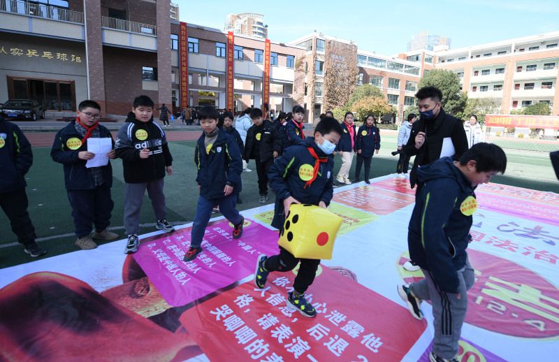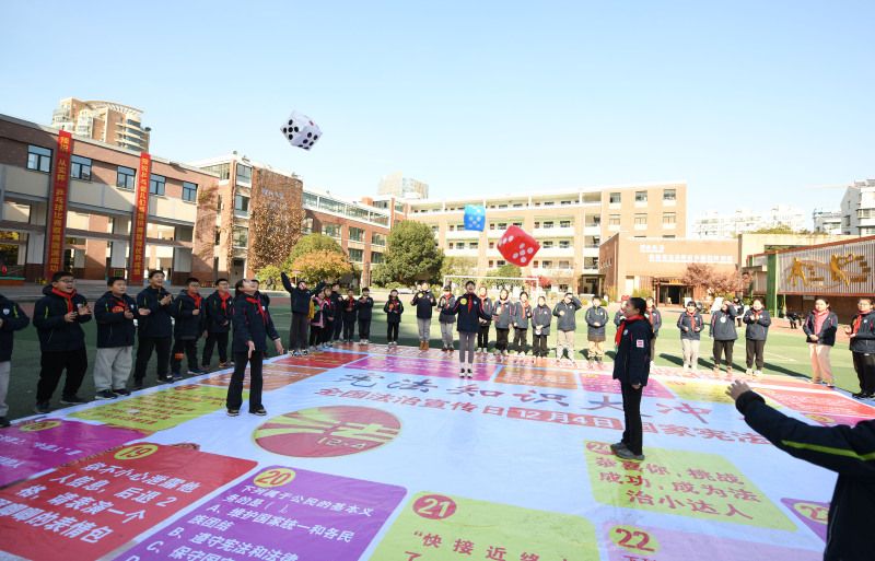 结合小学生的学习和兴趣特点,设计了趣味“法德飞行棋”比赛,通过挑战答题、奖励惩罚关卡、大冒险、趣味朋友圈等游戏环节,将《宪法》、《民法典》、《未成年人保护法》等法律法规、良好行为规范准则、健康生活习惯等与青少年学习生活息息相关的知识以寓学于乐的形式向学生进行宣讲。活动现场还设置了法治标语拍照打卡等趣味活动,让学生们在充分享受校园欢乐时光的同时,接受法治文化的熏陶和感染,在一个个趣味盎然的游戏互动中获得法治滋养、增强法治观念。