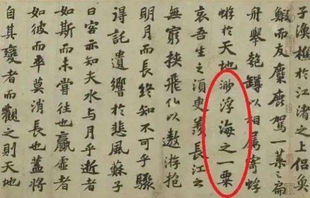 近日,台北故宫博物院展出苏轼亲笔手书的《前赤壁赋》,网友发现帖中原文写的是“渺浮海之一粟”,并不是此前广为流传的“沧海一粟”,疑似是后人抄写笔误,才造成这样的理解错误。“沧海一粟”是否要被改为“浮海一粟”,一时间引发热议。