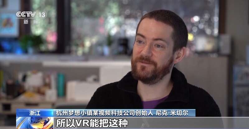 杭州梦想小镇某视频科技公司创始人 尼克·米切尔:在中国,把那么有趣的文化通过VR拍出来,分享给全世界的人,海外的传统文化也分享到中国,同时我们开始找一些新的机会,把这些人融合交流在一起。