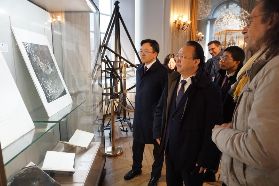 11月21日上午,代表团访问巴黎天文台,谭铁牛会见台长卡索利(Fabienne Casoli)及相关代表。双方签署校际合作备忘录,拟深化科研合作,进一步构建跨学科、深层次的科研合作与人才培养合作体系。会谈结束后,代表团考察了该机构的天文博物馆与天文台。