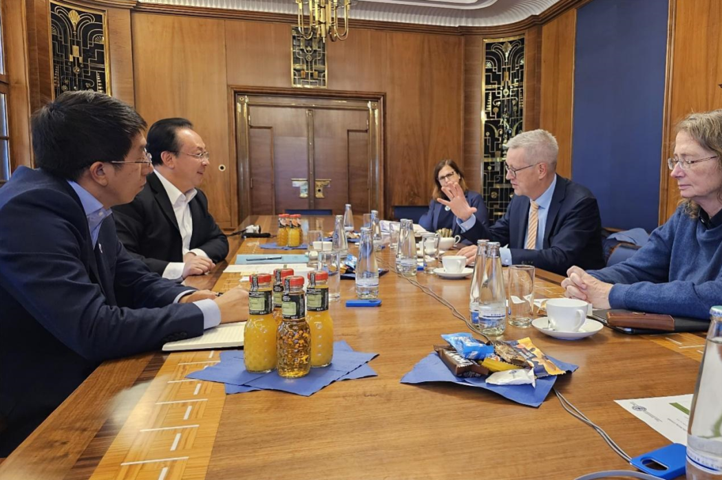 23日下午,代表团访问柏林自由大学,谭铁牛会见校长齐格勒(Günter Ziegler)等。双方就加强在历史、环境、地球科学等领域的教师交流并推动地球科学领域联合培养学位项目达成初步共识。