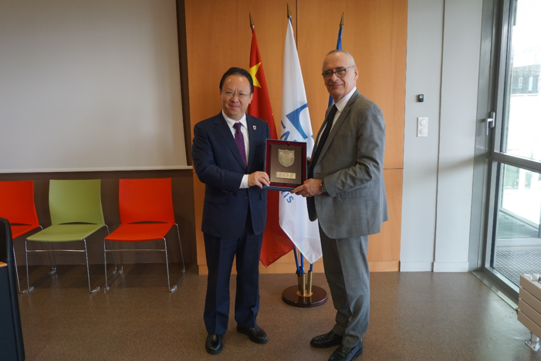 11月20日上午,代表团访问巴黎综合理工大学并与校长库隆(Thierry Coulhon)、外事副校长科里蓬(Elisabeth Crépon)进行了会谈。双方表示,中法两国有优良的合作传统,在气候变化等全球性问题上合作紧密,一致同意在以往合作的基础上进一步开拓创新,在纳米材料、气候环境以及生命健康等方向加强科研合作并探索建立合作平台,拓展在基础学科师生交流交换、联合培养项目等方面的合作并签署合作协议。
