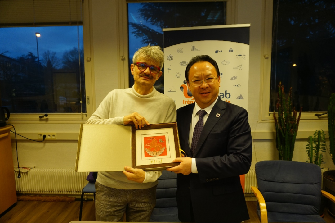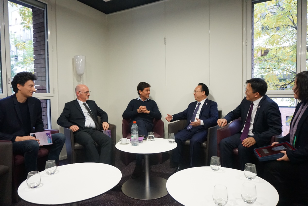 21日下午,代表团还访问了艾琳·约里奥-居里物理前沿实验室,会见了实验室主任斯托奇(Achille Stocchi)及教授代表。双方就在物理、天文等学科加强学生联合培养、拓展科研合作达成一致意见。