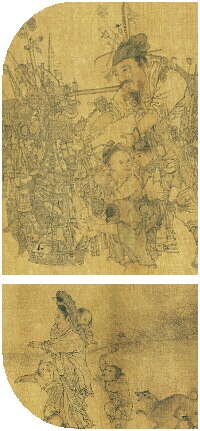 画家李嵩是光宗、宁宗、理宗的画院待诏,他出身木工,这段经历似乎培养了他精微作画的能力,也提供了足够的生活体验来描绘民间货郎。李嵩所创作且流传至今的《货郎图》共有四幅,其中北京故宫收藏的一件为小横卷,台北故宫博物院、美国大都会博物馆和克利夫兰博物馆收藏的都是团扇。北京故宫收藏的这幅画尺幅不大,纵25.5cm,横70.4cm,但是画家的勾勒却极为精细,在较小的面积内刻画出无比丰富的内容,其细致严谨的程度堪比国宝《清明上河图》。