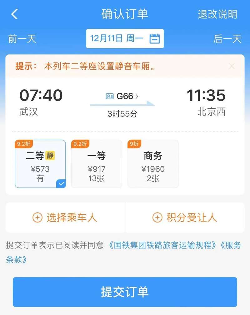 ● 1个订单中可添加发到站相同(可以是同城的不同车站)的2个相邻的乘车日期,每个乘车日期可添加5个不同“车次+席别”的组合需求。