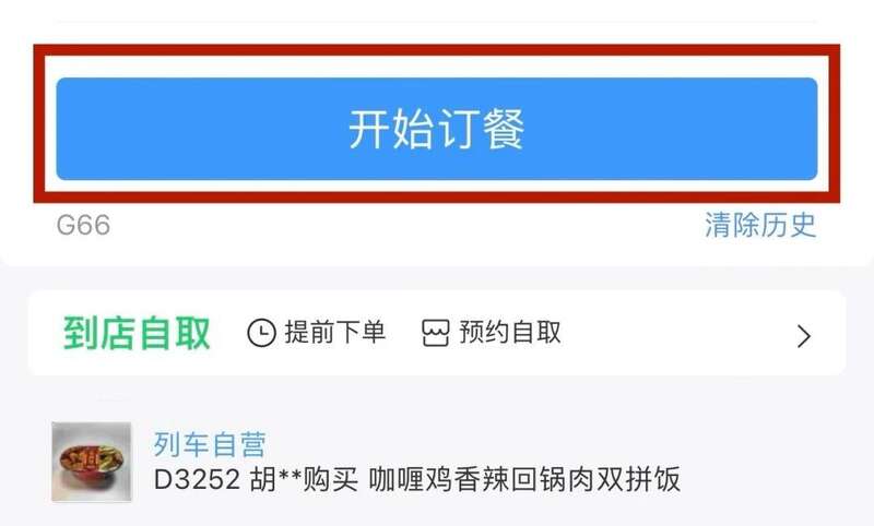 ●如果错过预订外卖还可以点击“铁路自营”选择餐车所提供的餐食,同样也提供送餐到位服务。
