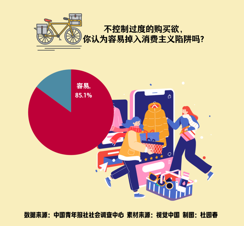 不控制购买欲,85.1%的受访者指出容易掉入消费主义陷阱。