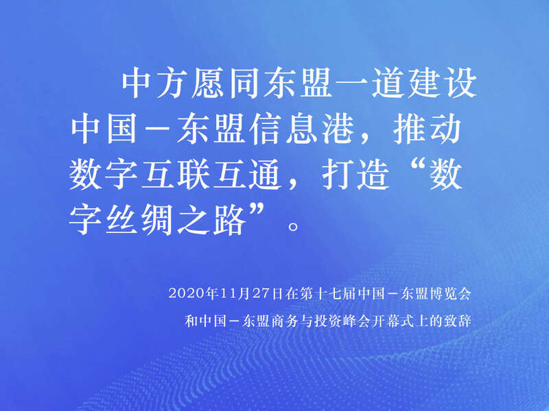 2014年,中国提出与东盟十国共建“中国-东盟信息港”倡议,得到了东盟各国的积极响应。在第十七届中国-东盟博览会和中国-东盟商务与投资峰会开幕式上,习近平总书记提出“提升科技创新,深化数字经济合作”的重要倡议,表示中方愿同东盟各国携手合作,抓住新一轮科技革命和产业变革机遇,发挥互补优势,聚焦合作共赢。