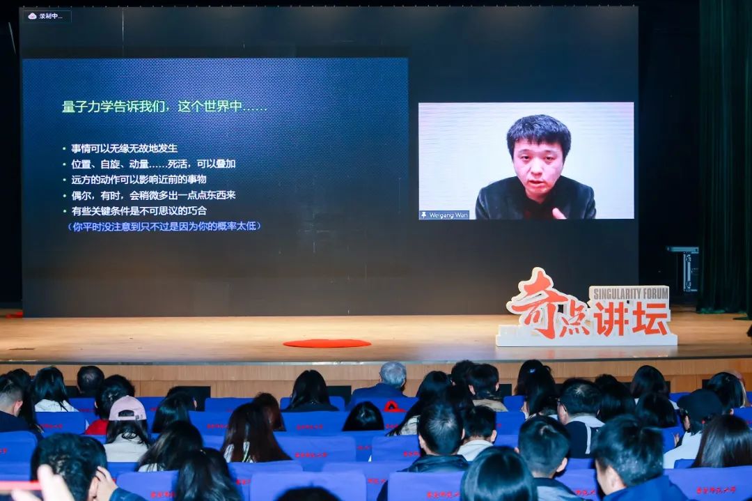 万维钢在线上带来演讲《日常世界中的量子幽灵》。万维钢结合了物理学发展过程中出现的不同学派与理论,以生动的语言向同学们阐述了量子力学对人们日常生活的意义。他强调,量子力学将会改写人们的世界观,从而进一步塑造人们的人生观和价值观。