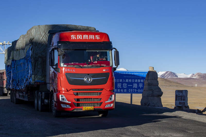 顿珠说,一卡车将近20吨货物每晚七八点从拉萨出发,第二天上午八九点就能到达申扎,旺季一天一车,淡季两天一车。作为拉萨方向果蔬供销的负责人,他经常往返两地。