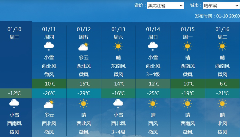 冷空气依然频繁。明后天,冷空气将影响内蒙古东部以及东北一带,尤其黑龙江部分地区降温幅度可达到6~10℃,像哈尔滨最高气温将从-8℃降到-15℃。