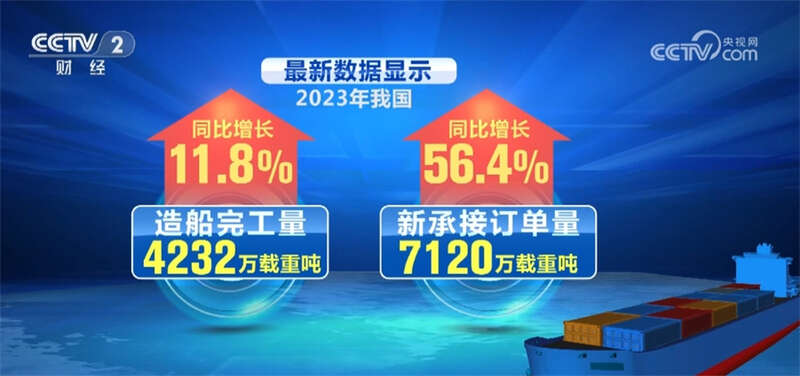 最新数据显示,2023年我国造船完工量4232万载重吨,同比增长11.8%;新承接订单量7120万载重吨,同比增长56.4%;截至2023年底,手持订单量13939万载重吨,同比增长32.0%,所有指标第一次实现2位数增长。
