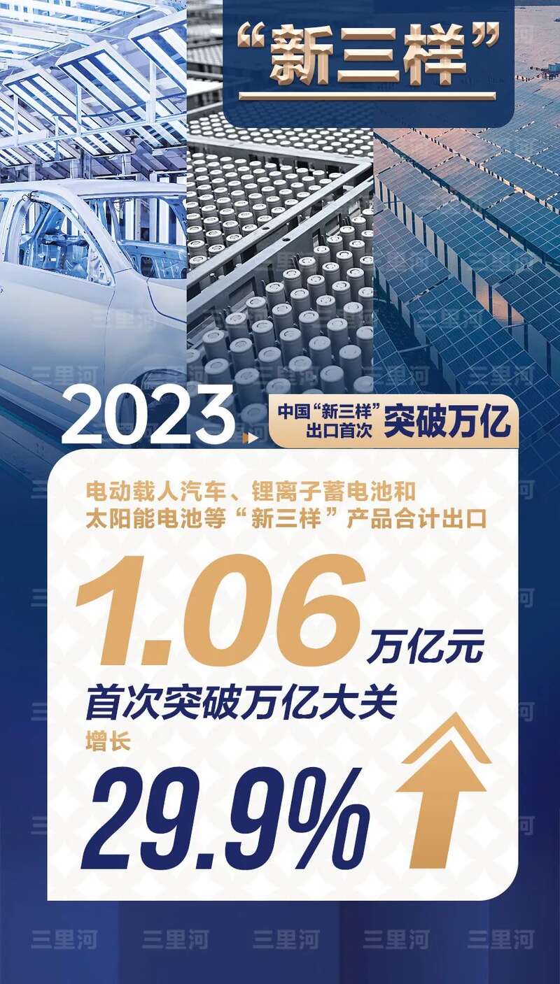 活力来自新动能——制造业技改投资增长3.8%,高技术产业投资增长10.3%,快于全部固定资产投资的增速。2023年电动载人汽车、锂电池和太阳能电池等“新三样”产品合计出口1.06万亿元,首次突破万亿大关。中国经济在加快培育新质生产力中不断发展壮大。