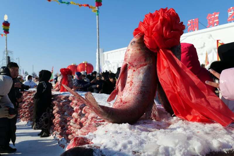 吉林松原查干湖,零下20摄氏度。第22届冰雪渔猎文化旅游节正在这里热火朝天进行。