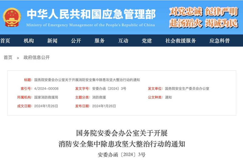 国务院安委办:在全国组织开展消防安全集中除患攻坚大整治行动
