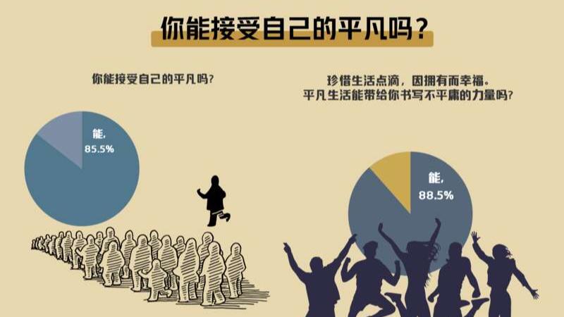 小时候,我们总梦想着能成就一番“惊天伟业”,后来,年纪越大越明白,平凡是生活的本色,不凡是生命的追求。只有脚踏实地地把每件平凡的事做好,才有可能创造出不平凡的成绩。中青报社调中心的一项调查显示,85.5%的受访青年能接受自己的平凡,近九成受访青年认同“接受平凡、追求不凡”的人生态度。知足常乐、尽心尽责、平凡不平庸是年轻人最为看重的三种人生状态。更多数据发现,请看本期《快看数据》。