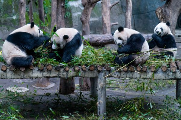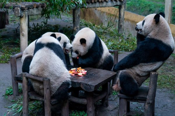 重庆:大熊猫“四喜丸子”“渝可渝爱”围桌聚餐 享受快乐熊生