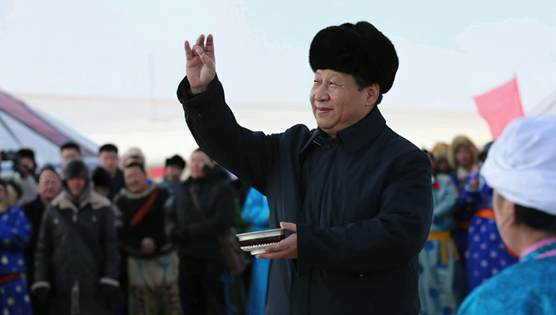 在传统的“五畜祈福”仪式上,习近平总书记按照蒙古族习俗,用无名指蘸上用银碗盛着的鲜牛奶弹了三下,祝福来年风调雨顺,五畜兴旺,人民幸福安康。