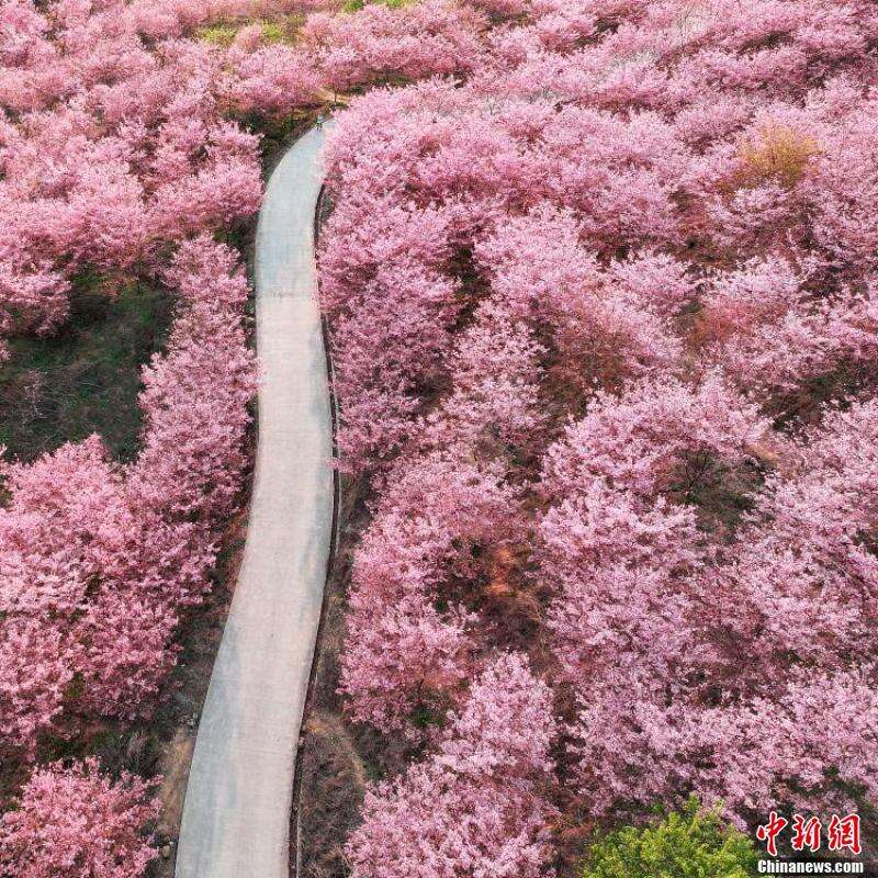 樱花盛开漫山遍野如云似霞 如同走进油画