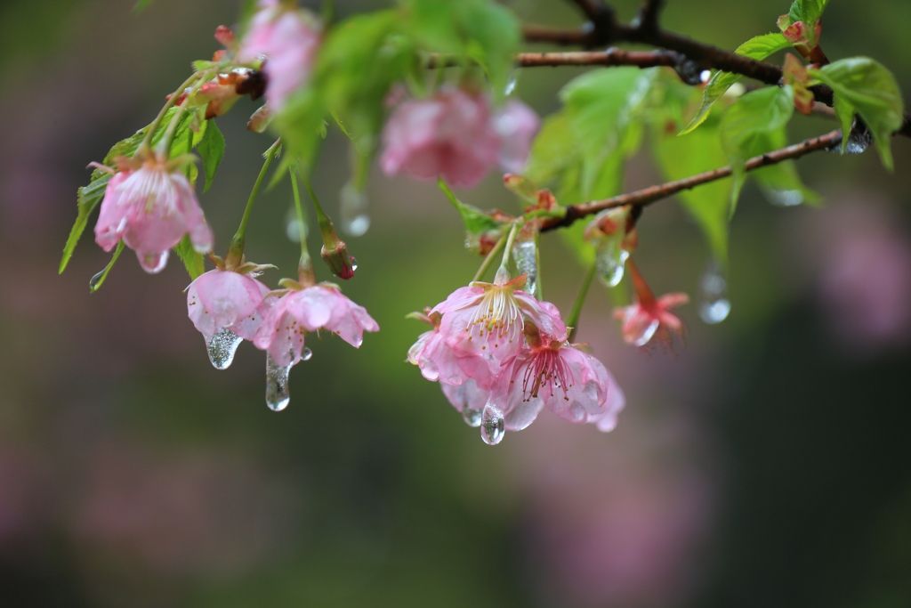 2024年2月23日,杭州植物园早樱绽放,冻雨挂在樱花上,晶莹剔透。