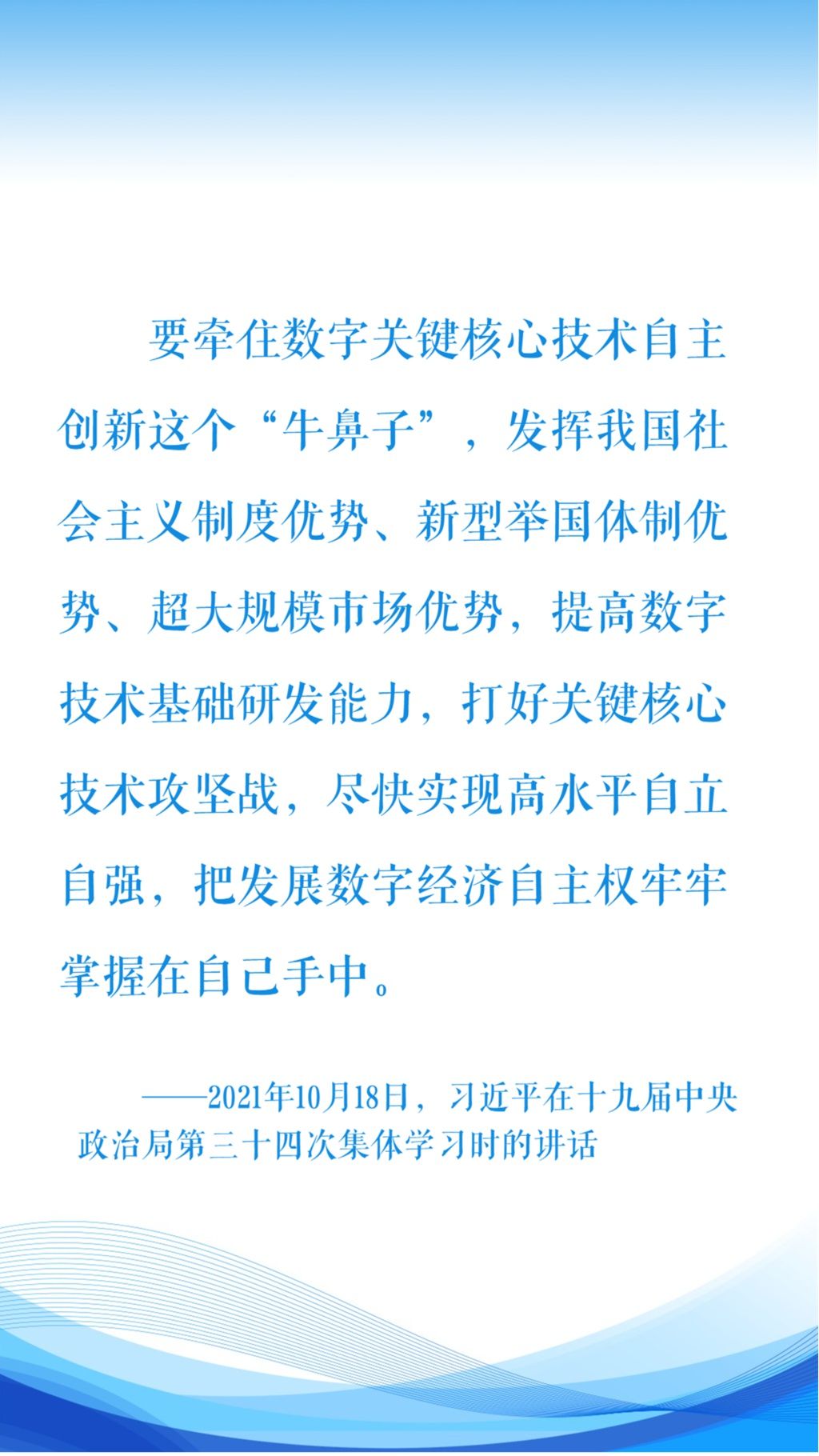 网信事业,代表着新的生产力和新的发展方向。网信领域的竞争,也是不同国家数字关键核心技术自主创新能力的竞争。要在网络时代保障国家安全,要推进中国式现代化,就必须牵住数字关键核心技术自主创新这个“牛鼻子”,解决核心技术受制于人的隐患,提升自主创新能力,努力实现高水平科技自立自强。(肖聪聪)