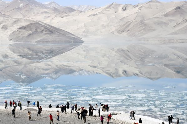 新疆克州:春回帕米尔高原 白沙湖牦牛成“迎客大使”