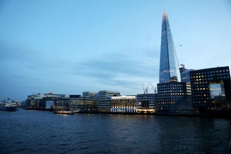 这是在英国伦敦拍摄的日暮时分的泰晤士河和碎片大厦。