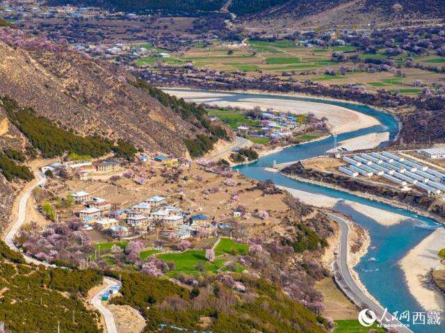 在西藏自治区那曲市嘉黎县尼屋乡,两岸桃花次第分布,一簇簇如云霞坠地,村舍错落其间,景色美不胜收。近年来,嘉黎县依托自然资源优势,大力发展特色旅游业,实现乡村建设与自然生态环境有机融合,推进乡村全面振兴,带动村民在家门口就业创业、增收致富。