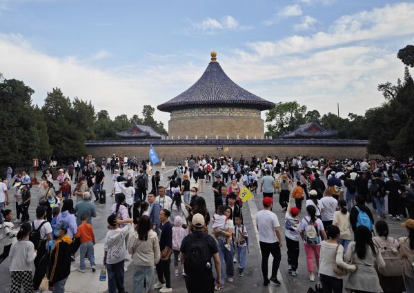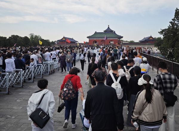 “五一”假期首日 北京天坛公园开启“人山人海”模式
