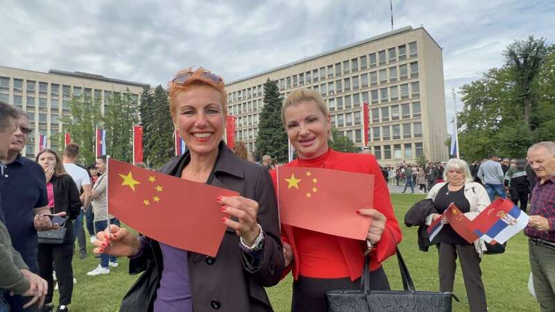 大厦广场上,一万五千名塞尔维亚民众挥舞中塞两国国旗,对习近平表示最热烈的欢迎。