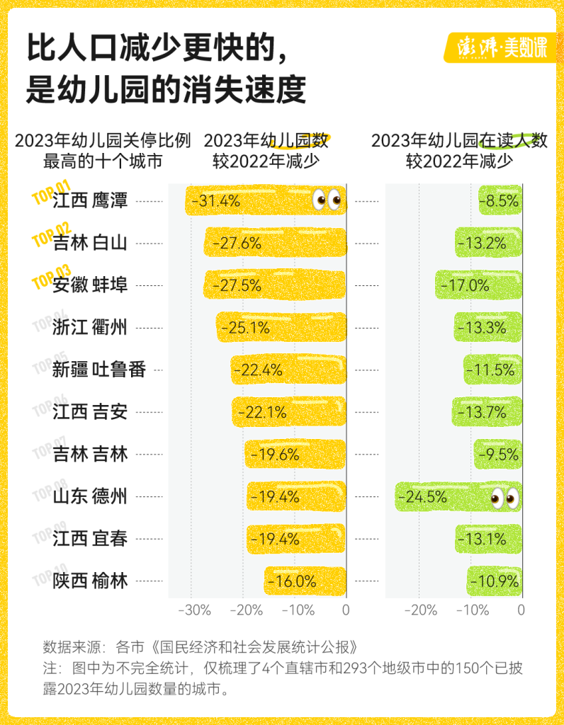 幼儿园关得最多的城市,不是人口减少最多的