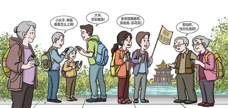 “遇到了一群超级有趣的叔叔阿姨,他们都是高学历、高素质的人,条件特别好……总是主动分享美食和用品,生怕你不够用”“跟着老年团就可以全程托管,让‘老’朋友们帮忙统筹”“报了老年团,同团的奶奶给介绍了富二代”……网络上,围绕“年轻人报名老年团”的文章,有不少带有夸张的情节,吸引了很多关注。