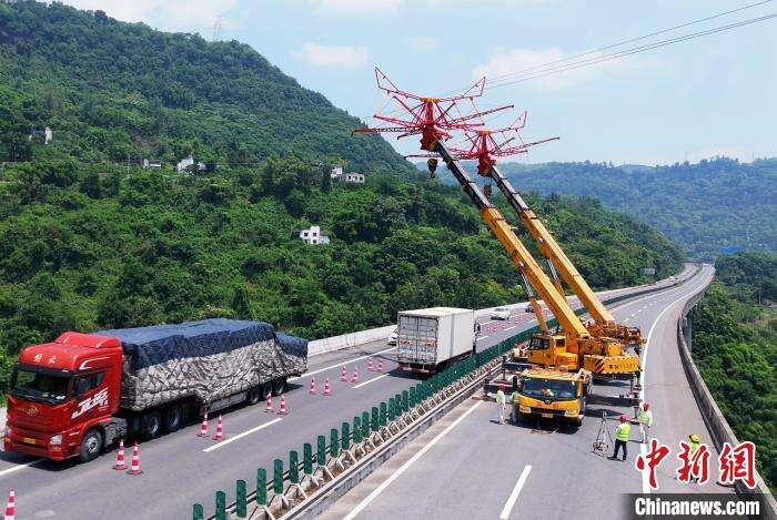 当天,在重庆市万州区境内的G42沪蓉高速何家湾大桥上,两辆起重吊车伸长“手臂”,分别将两把8×12米的“巨伞”高高撑起,巨型移动“保护伞”支撑在交错的线路间开始此次电网升级改造作业,为跨越施工提供可靠安全保障。
