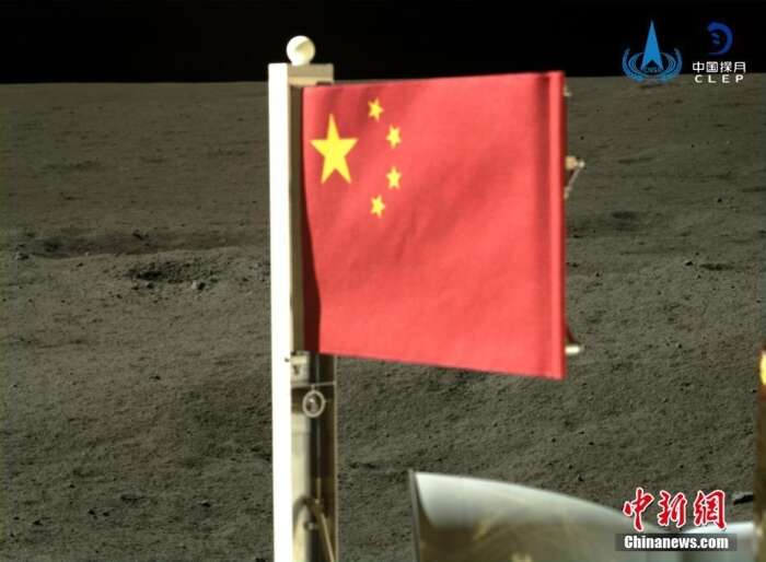 美联社关注到这面闪耀月背的五星红旗,并介绍称这面旗帜是由特殊的复合材料制成,在着陆器侧面展开的可伸缩臂上被展示给世人。