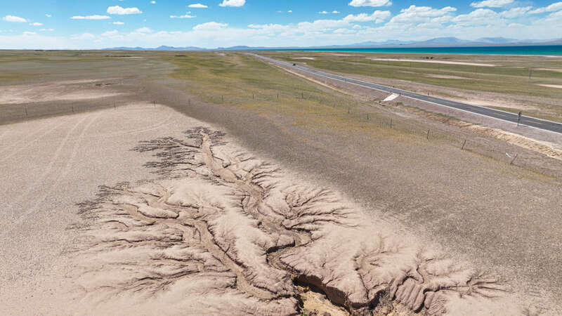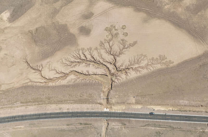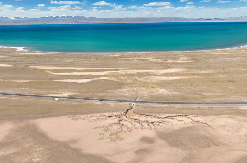 在西藏那曲市,317国道的2442里程碑附近有一处被称作“天空之树”的神奇景观。由于此处地势条件特殊,流水冲刷大地,进而形成从空中俯瞰如大树一般的痕迹。