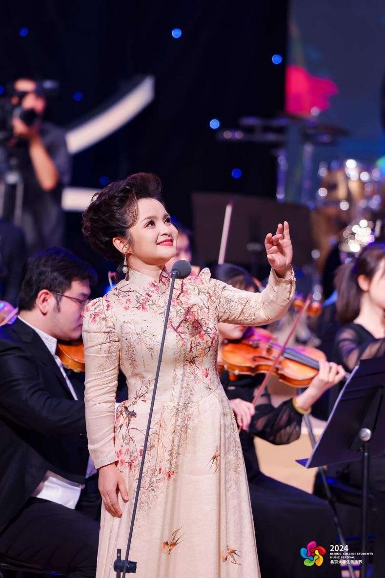 本届北京大学生音乐节推广大使、中国音乐学院声乐歌剧系主任、女高音歌唱家吴碧霞,演绎了《敕勒歌》《广寒宫》两首曲目。演出最后,全体演员共同唱起本届音乐节主题曲《追梦的你我》。