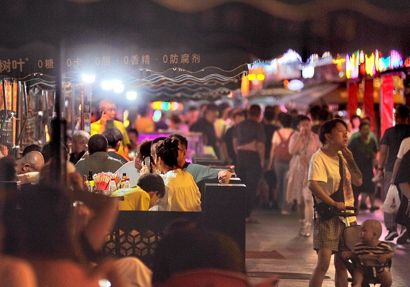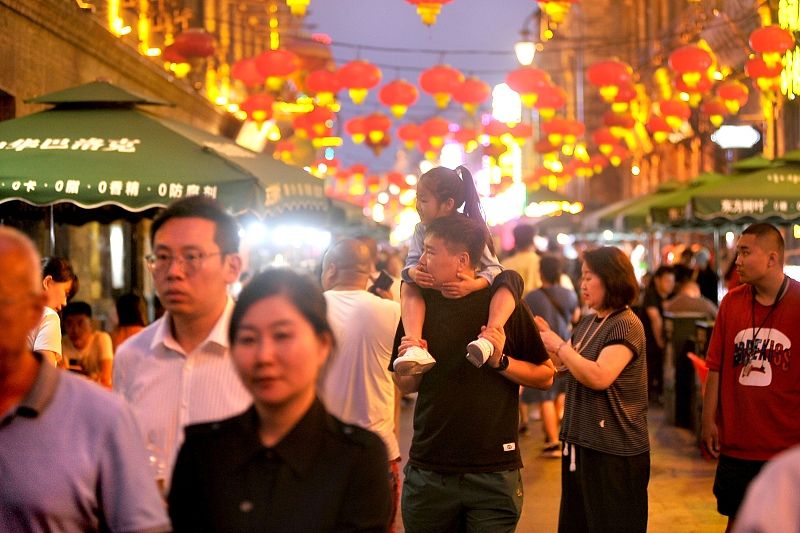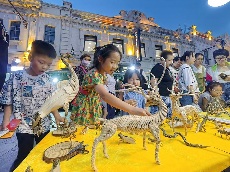 2024年7月10日 ,哈尔滨,夜幕降临,道外区中华巴洛克历史文化街区烟火气十足,安装在庭院、街头的数百盏红灯笼陆续点亮,映衬着道路两侧的百年建筑。
