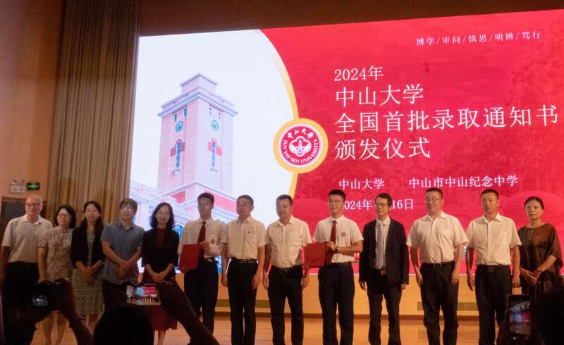 中山大学首封录取通知书在中山纪念中学颁发