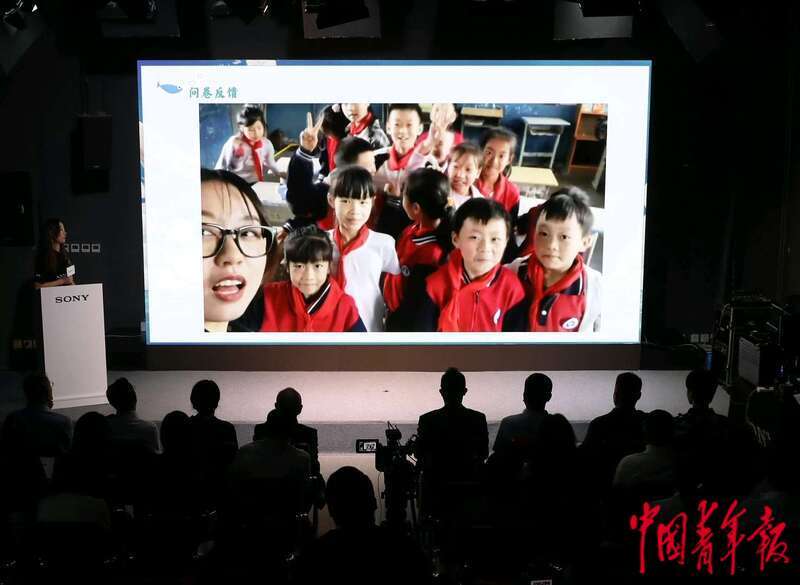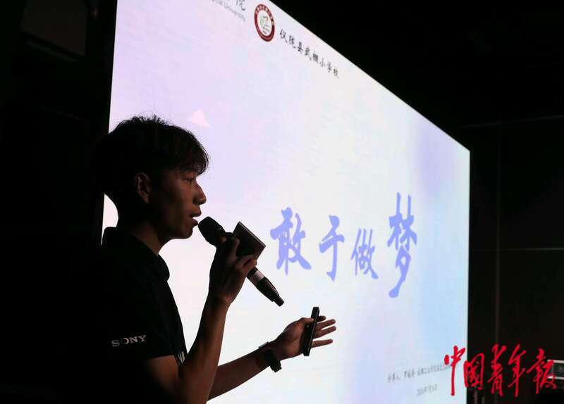 7月16日,北京,索尼影像技术学院,来自中国传媒大学“传梦”团队的大学生代表李旺熹发言,讲述他们在山西宁武县西关小学和阳方口煤矿小学支教的故事。中青报·中青网记者 陈剑/摄