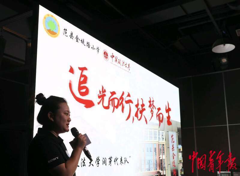 7月16日,北京,索尼影像技术学院,来自中国政法大学“润芽”团队的大学生代表张胜男发言,讲述他们在河南范县金堤路小学的支教故事。中青报·中青网记者 陈剑/摄