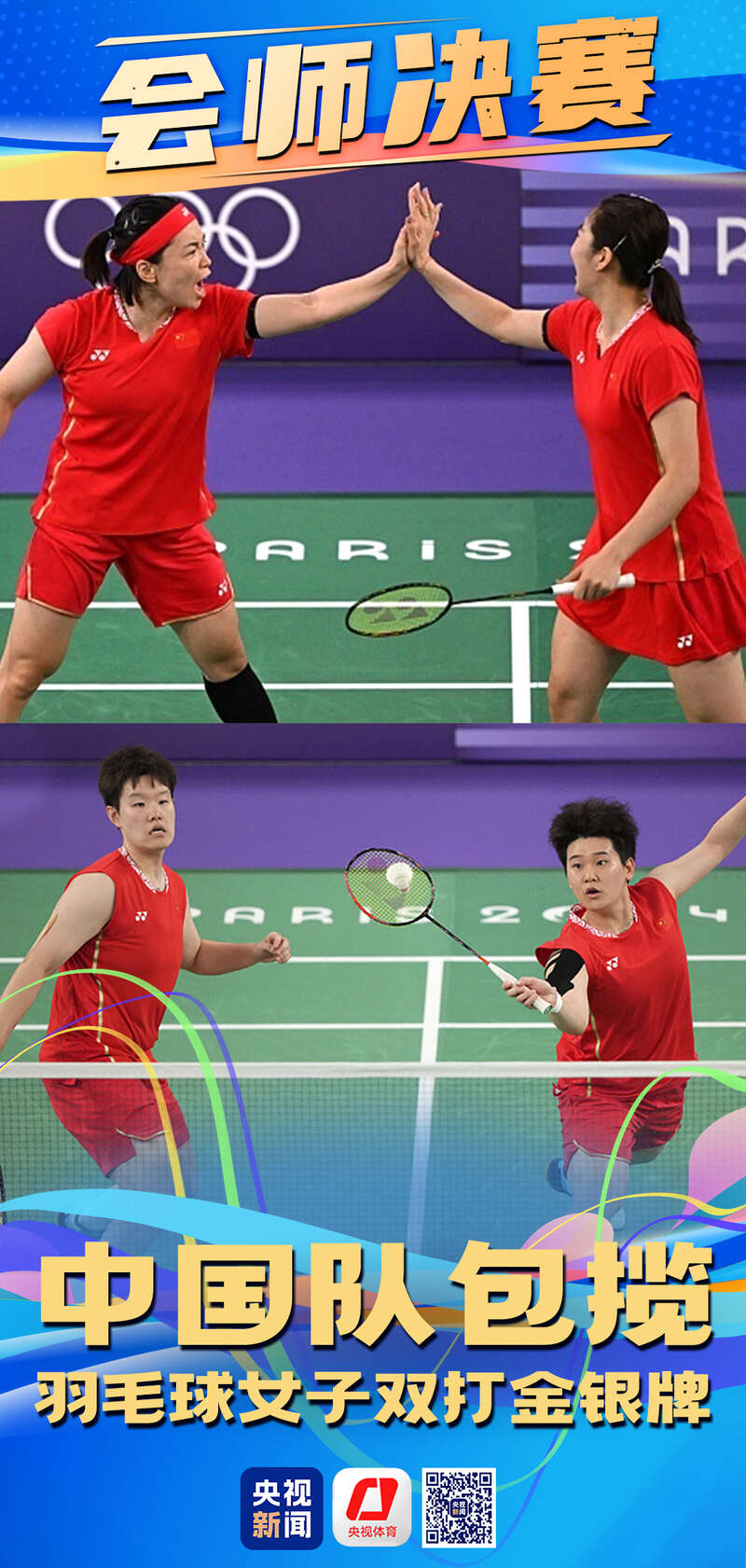 在羽毛球女双半决赛中,中国组合刘圣书/谭宁战胜日本组合,与陈清晨/贾一凡会师决赛,国羽女双再次提前包揽巴黎奥运会金银牌!四位姑娘成功将东京奥运会的银牌升级成巴黎的“一金一银”,这场巅峰对决,我们拭目以待!