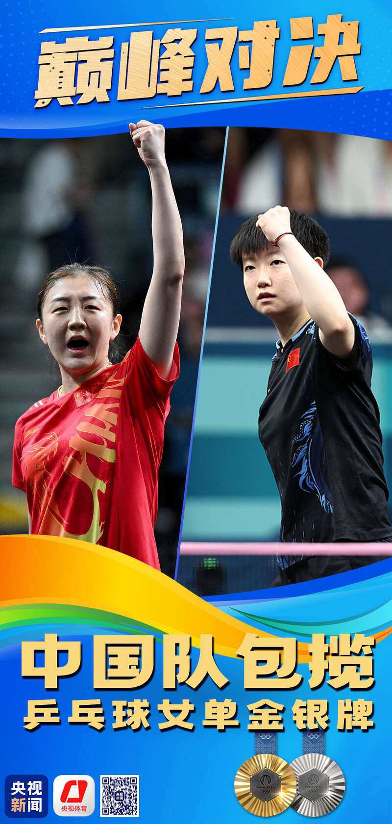 乒乓球女子单打半决赛,中国选手孙颖莎与陈梦成功会师决赛,中国队提前包揽一金一银。决赛将于北京时间8月3日20:30上演。巴黎奥运会乒乓球项目第二枚金牌即将产生,将以会师的方式实现国乒女单十连冠!