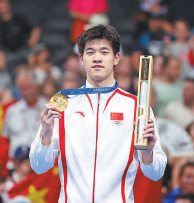 泳池竞逐,中国游泳队获得12枚奖牌,总数较上届翻了一番,7个接力项目全部参赛,获得5枚奖牌和2个第四名。潘展乐夺得男子100米自由泳金牌并刷新世界纪录,这也是中国队选手首次登上该项目最高领奖台。“我的这块金牌献给伟大的祖国。”潘展乐说。