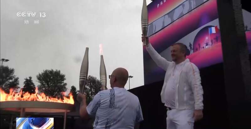 随后,两人点燃了国际残奥委会主席安德鲁·帕森斯手中的火炬。安德鲁·帕森斯在人群中展示火炬后,火种被装入火种灯,移交给巴黎奥组委主席托尼·埃斯坦盖,两人拥抱庆祝这一时刻。